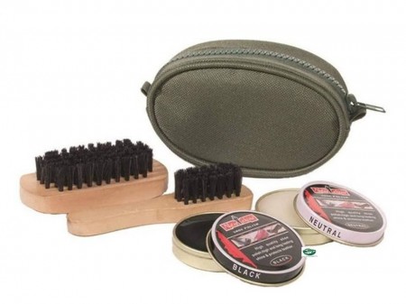 Pratico kit da viaggio per la pulizia delle tue scarpe,contiene una spazzola in setole semidure,una spazzola con setole morbide,un panno morbido in cotone una confezione di cera da scarpe colore neutro e una colore nero.