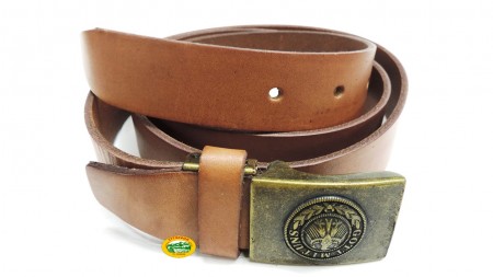 Cintura in cuoio marrone con fibbia in metallo, altezza 2,7cm lunghezza 120cm.