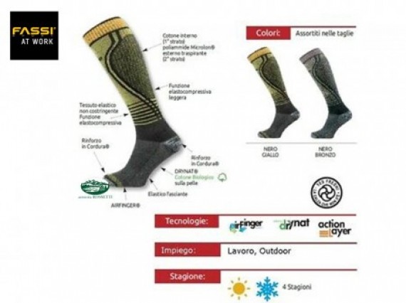 Calza dal comfortineguagliabile in quanto la pelle si trova a contatto con la fibra naturale. Tutta l'area del gambale è costruita su un tessuto elastico a compressione graduata che favorisce il ritorno venoso, attenuando la sensazione di pesantezza e affaticamento alle gambe.