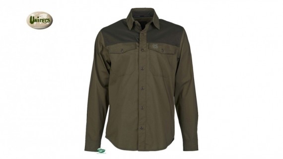 Camicia da caccia FIELD in tessuto misto cotone elasticizzato con due tasche al petto. Maniche avvolgibili vVerde con inserti verde scuro.