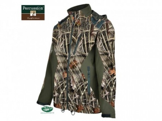 Bellissima giacca Percussion in softshell 15137 modello mimetica Canneto. Questo modello della Percussion ha un design fantastico ed è uno dei 3 di una collezione fenomenale. Fantastico prodotto in soft schell che lo rende anche anti-vento evitando di fatto il freddo. Anche impermeabile grazie alla membrana interna. Adatto a tutti i tipi di caccia.