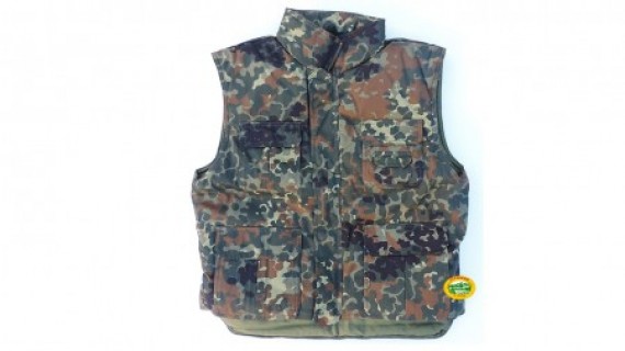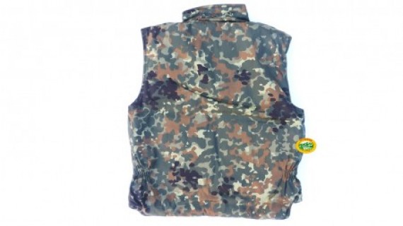 Gilet bimbo imbottito, 5 tasche frontale e una interna, chiusura a cerniera e bottoni a pressione . Colore americano . La parte posteriore è più lunga rispetto quella anteriore .