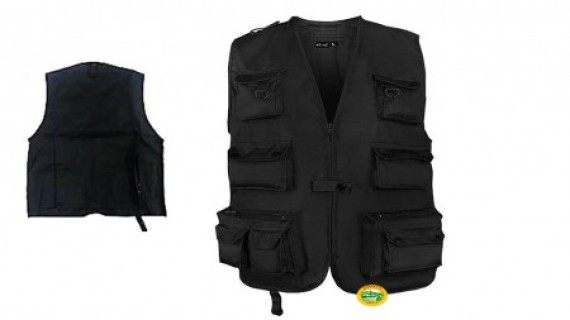 Gilet nero multitasche in cotone leggero traspirante con fodera interna in rete. 9 tasche frontali con chiusura a zip e bottone carniera posteriore con chiusura a zip 4 tasche interne pratiche ed utili per ogni situazione.