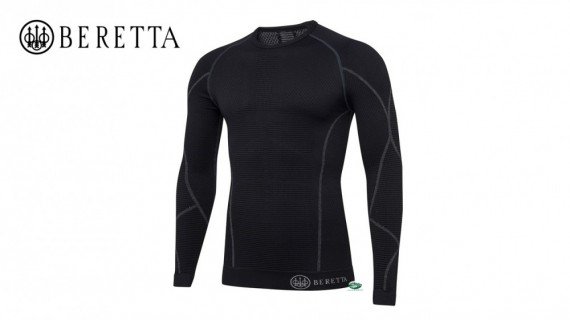 Maglia intima unisex nera a manica lunga HT Body Mapping 3D L/S altamente elastica con aree di compressione a densità differenziata per massimo comfort e tecnologia Sensil® Innergy.