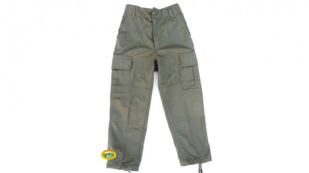 Pantaloni verde per bambini con 2 tasche anteriori, 2 tasca posteriore, 2 tasche cargo, lacci alle caviglie, elastico in vita . Vestibilità regular .