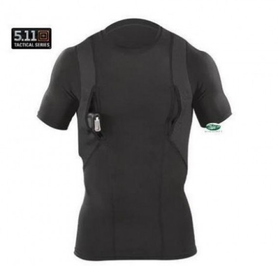 HOLSTER shirt CON FONDINA INTEGRATA ti permette di trasportare discretamente e comodamente un 'arma sotto un altro indumento professionale.Spalla in ree che distribuisce uniformemente il peso,strato interno imbottito in schiuma e tessuto in spugna per eliminare l'umidita'.