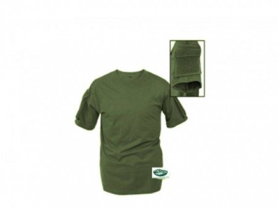 T-shirt verde di cotone con tasche 16x12 utility e velcro patch sopra le maniche .