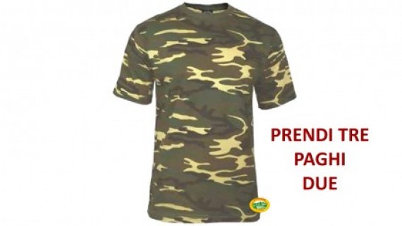T-shirt cotone mimetismo Woodland . Acquistando due T-shirt la terza e in omaggio , anche colori diversi di pari prezzo .