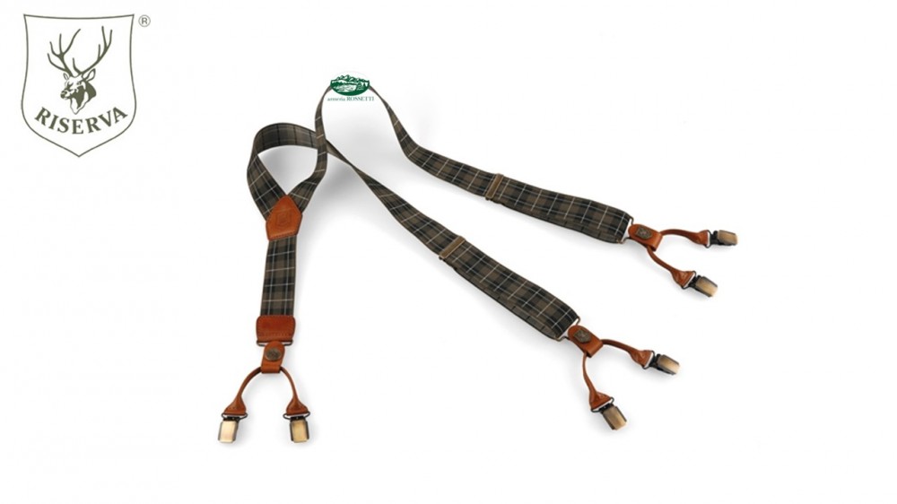 Bretelle per pantaloni in elastico e attacchi in pelle. Possibilità di cambiare gli attacchi a pinza con attacchi a bottoni (venduti a parte) grazie ad un semplice sistema di bottone a pressione.