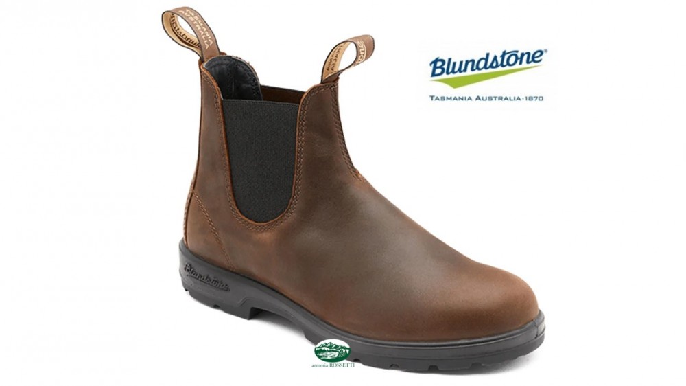 Look grintoso e alla moda per gli stivaletti in stile Chelsea modello Blundstone #1609, realizzati in pelle marrone antico effetto vissuto ed elastici marrone scuro. Dotati di linguetta anteriore e posteriore per aiutarvi nella calzata e di comoda suola in gomma antiscivolo, con carrarmato e tacco rialzato logato. Facilmente abbinabili con look casual di tutti i giorni.