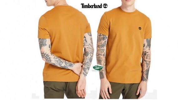 T-shirt slim da uomo in 100% cotone biologico, coltivato senza l'impiego di sostanze chimiche nocive o pesticidi. Classico modello girocollo a maniche corte, con logo Timberland® ad albero ricamato sul petto.