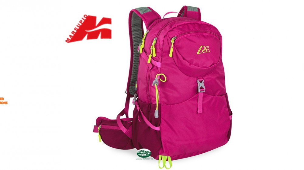 Zaino con dorso traforato traspirante. È dotato di spallacci traforati, sagomati e regolabili, cinturino pettorale regolabile con fibbia fischietto, cinghia a vita regolabile e alette lombari in rete traspirante con tasche esterne. Lo scomparto principale è estendibile e al suo interno vi si accede grazie all'ampia apertura con zip. Esternamente è dotato di varie tasche: una frontale con chiusura a zip, una veloce con fibbia e due laterali porta borraccia. Ha porta bastoni e nastri di compressione laterali. È compatibile con i sistemi d'idratazione e ha incluso il copri zaino, collocato in una tasca dedicata sul fondo.