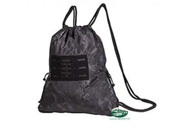 Sacca in tessuto impermeabile misura 42x32 mimetismo mandra night ,comoda tasca carniera con zip,inserto in velcro frontale per patch.
