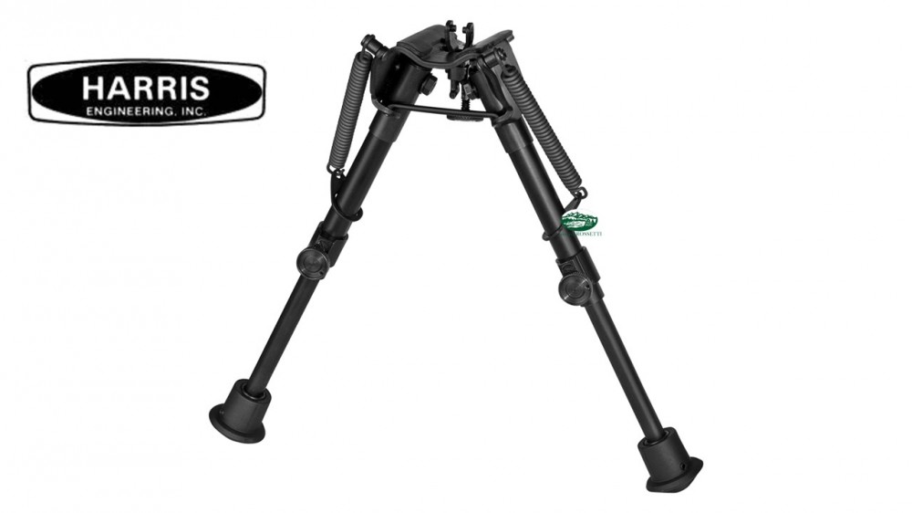 I bipIedi per armi Harris sono ultraleggeri.di rapido funzionamento e robustissimi.Le zampe pieghevoli presentano estensioni telescopiche a molla regolabili;sono realizzate in acciaio trattato a caldo e in lega metallica.La loro finitura è nera anodizzata-La base è solidale con l´arma.