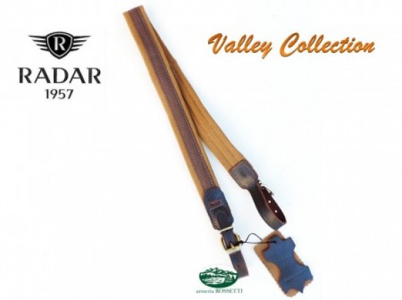 Bretella da fucile collezione Valley. Realizzata in tessuto Stone Wash e pelle. Puntale rinforzato e corredato di fibbia di chiusura in ottone satinato.