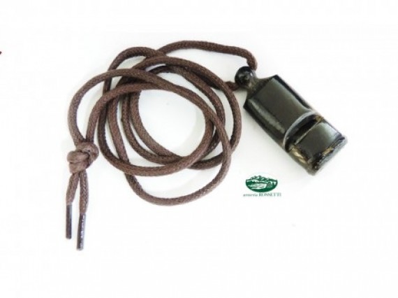 Fischietto CHASSEUR piatto in osso di bufalo con cordoncino .