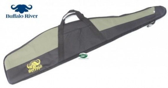 Semplice e pratica custodia per carabina in resistente tessuto. Tasca esterna portadocumenti e cerniere con cursori ad asola per l’eventuale utilizzo di un lucchetto di bloccaggio. Personalizzata col logo Buffalo River. Lunghezza totale 122 cm.