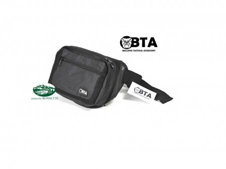 Marsupio tattico realizzato in cordura nera con quattro tasche.