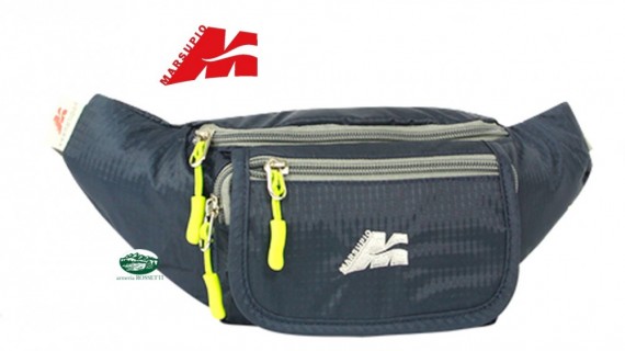 Marsupio dotato di numerosi scomparti, molto comodo e funzionale, con una tasca frontale, tasca posteriore porta documenti, cinghia a vita regolabile.