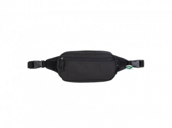 Marsupio in cordura nero,piccolo e compatto,2 tasche con cerniera,tasca principale con cerniera a 2 vie,con interno in rete e ampi passanti elastici,cinturino in vita regolabile,tasca a scomparsa sul retro.