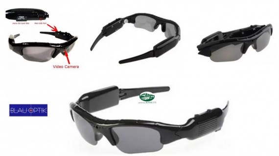 Questa occhiali da sole sono dotati di una micro telecamera al centro dell'occhiale. Puoi registrare video in formato 640*480 con una semplice pressione di un pulsante posto sopra la stanghetta. Il Video viene salvato direttamente su una scheda microSD max 8GB . Indicato per investigazione, per uso sportivo, natura ecc ecc.