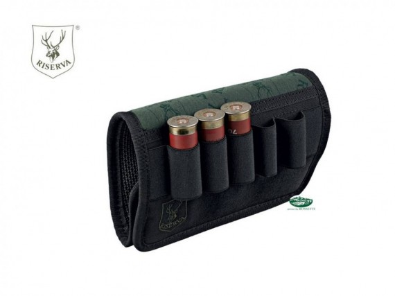 Porta cartucce per calcio fucile in Cordura nero, 5 celle multicalibro nero-verde