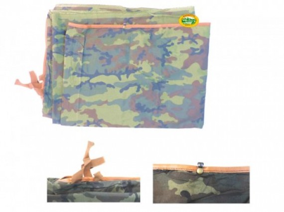 telo mimetico per capanni e parate bordato in similpelle con pratiche clip per aggangio alle traversine e lacci laterali per fissaggio ai paletti. Mimetico bosco Woodland