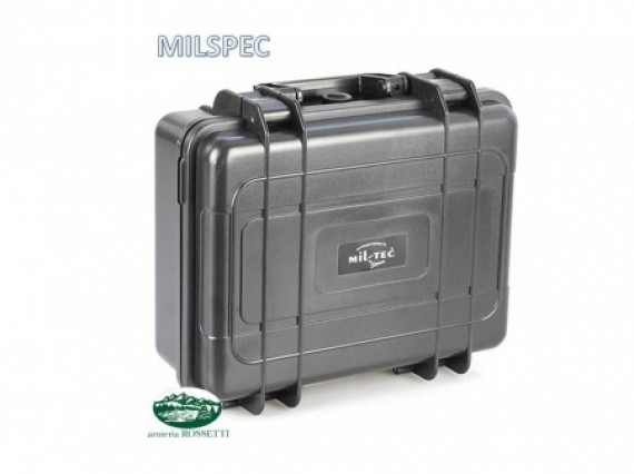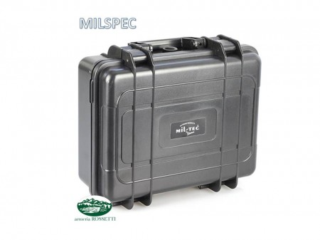 Valigetta rigida in polimero,multiuso, con 2 clip di chiusura e spugna interna bugnata, nera.