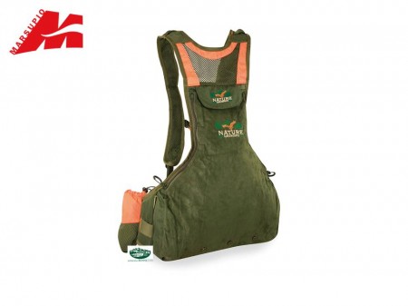 Nuovo concetto di zaino/gilet studiato per essere piu’ avvolgente ed ergonomico durante l’attività venatoria. Ha dorso, spallacci e cinturone a vita imbottiti in rete per una maggiore traspirabilità, cinturino pettorale scorrevole con fibbia-fischietto. Accessoriato sugli spallacci di taschina porta colpi a 5 celle, porta borraccia, tutti removibili e collocabili nei vari attacchi funzionali. Ha anche uno zaino capiente sul retro accessibile su entrambi i lati con banda catarifrangente estraibile e tasca interna porta documenti.