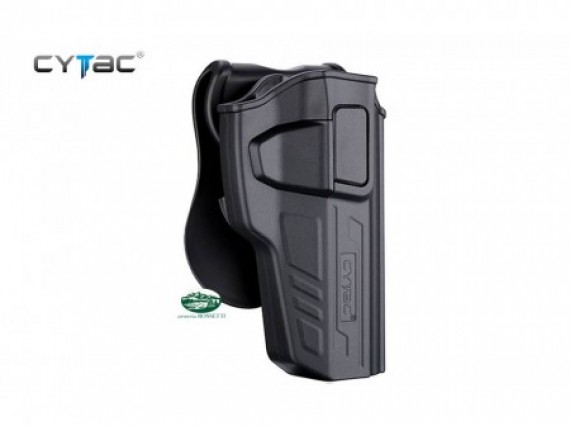 La fondina CYTAC Polymer rotatable HOLSTER e' progettata per ruotare a 360°gradi.La posizione e' personalizzata dalla regolazione dell'inclinazione attraverso l'impiego della chiave a brugola in dotazione ,ogni fondina ha cinque differenti opzioni di attacco,con ritegno
