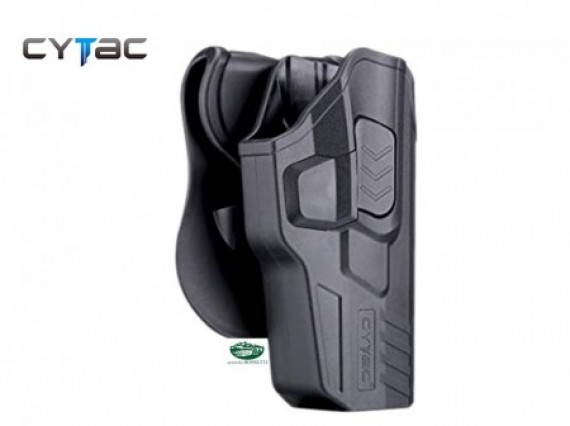 Progettato per resistere alle condizioni operative più difficili, Cytac® Holster è un'apparecchiatura ideale per uso militare, forze dell'ordine o protezione personale. Con un pulsante di sgancio rapido / blocco rapido, l'intero meccanismo protegge l'arma in modo sicuro e consente ai tiratori di fondersi facilmente e facilmente.