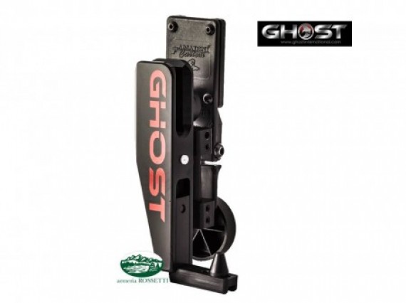 Sistema di bloccaggio a semisfera in materiale plastico per garantire sicurezza e velocità di estrazione. Supporto frontale per canna completamente regolabile per tutte le lunghezze di arma. Aggancio cintura compatibile con SuperGhost Ultimate e Stinger Ghost.
