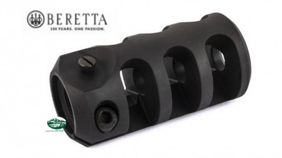 Freno di bocca Military per Sako TRG ma compatibile con tutti i fucili con canna filettata passo 5/8x24 e diametro canna 22mm. Dotato di aggancio sulla parte superiore per la banda antimiraggio
