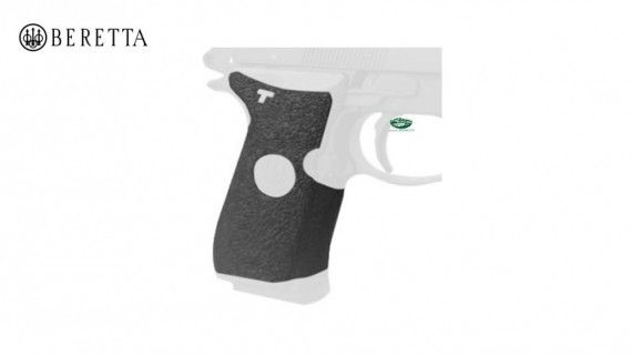 Grip adesivo per pistole Beretta Serie 92 Full Size con fusto profilo classic (conrigonfiamento dietro all'impugnatura) con texture Rubber (gommata) di colore nero. Va installato sopra le guancette in polimero originali
