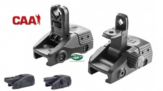 Set di tacche di mira flip up abbattibili realizzate in alluminio e polimero per garantire leggerezza e resistenza.