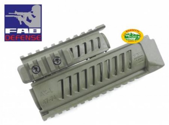 Costruita in polimero speciale ad alta resistenza. Dotata di 4 slitte Picatinny. Adattabile a tutti imodelli di AK. Colore verde