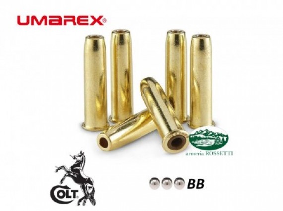 Bossoli di ricambio per revolver CO2 Umarex Colt SA45 a pallini sferici. Confezione 6 pezzi.