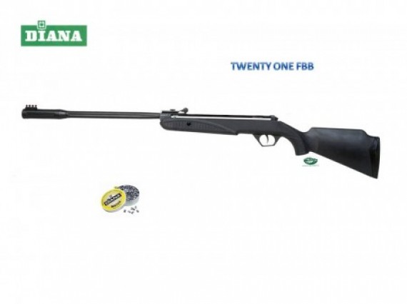 Carabina Diana con canna basculante, <7,5 joule in calibro 4,5mm, con calcio sintetico nero e dotata di mire TRUGLO in fibra ottica.