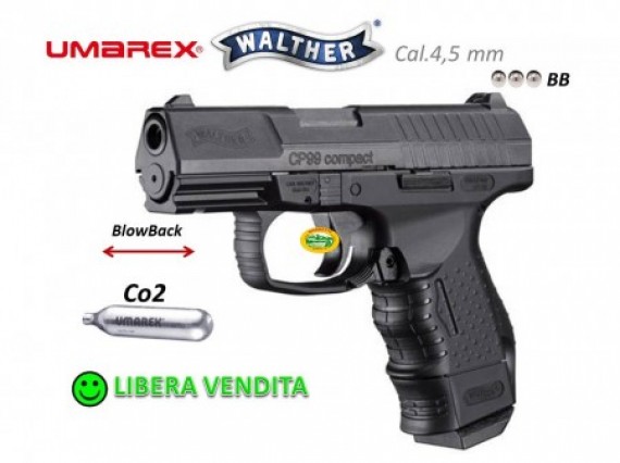 La versione compatta della Walther CP 99 è una replica scarrellante funzionante a CO2. La pistola ha una canna ad anima liscia, che viste le dimensioni molto compatte dell'arma è lunga soli 90mm. Il caricatore, inserito all'interno dell'impugnatura, è capace di 18 pallini sferici in calibro 4,5mm, ed è calamitato per trattenere in sede i pallini sferici in acciaio. Le mire sono fisse, direttamente ricavate sul carrello. Una volta finiti i colpi la pistola rimane a carrello aperto, esattamente come le vere pistole. Si tratta di una replica ben realizzata e realistica.