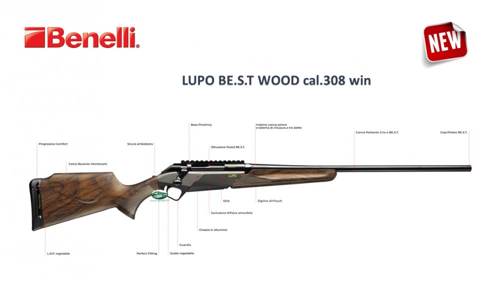 Dal design estramente ergonomico, la Lupo BE.S.T. Wood è l'unica bolt action al mondo a garantire assoluta modularità e a modellarsi sulla corporatura di ogni cacciatore.