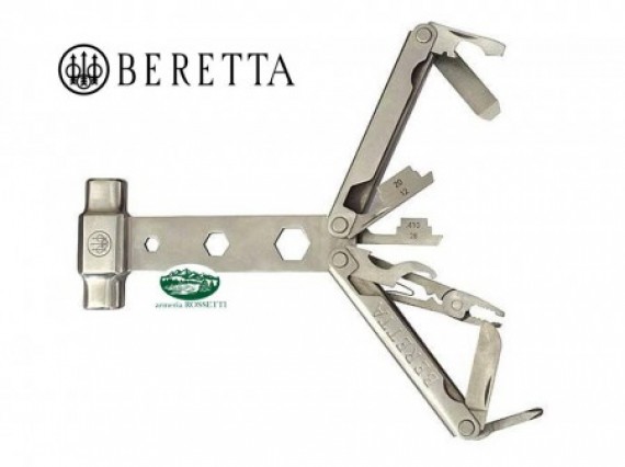 Attrezzo multiuso ripiegabile 11 attrezzi per la manutenzione e la cura dei fucili Beretta - testa a martello - cacciavite - lima fine - chiave strozzatore 28 - 410 - chiave strozzatore 12 - 20 - attrezzo strozzatore Optima, Mobil e Victory - cacciaviti Phillips (taglio a croce) - pinze piccole - lama - punzone da 2 mm