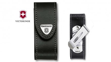 Comodo ed elegante fodero multiuso in cuoio nero con chiusura in velcro e clip per cintura. Logo frontale.