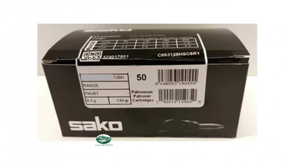 Sako munizioni cal.6,5x55 SE FMJBT Range 9.3g/144gr FMJBT conf.50 pezzi 128H