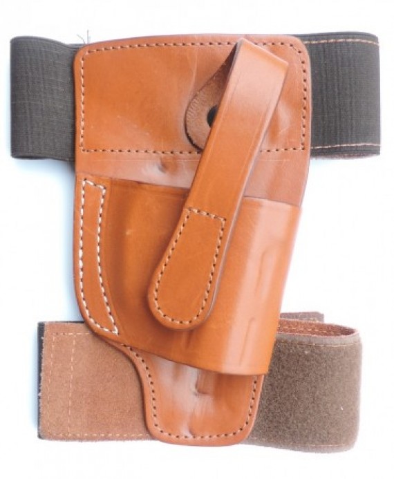fondina in cuoio in perfette condizioni, per il porto da caviglia o polpaccio ambidestra per pistole semiautomatiche medie come Glock 17-19-20-21-22- 32 ecc - Beretta 84fs APX compact, Walther PPQ, Sig Sauer P232, Smith Wesson M&P ecc.
