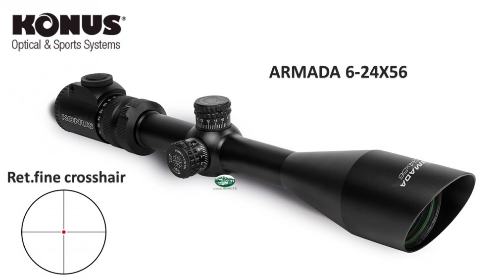 – Reticolo fine crosshair inciso con punto illuminato rosso e