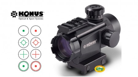 Il modello #7378 KONUSIGHT è un sistema di puntamento tecnologicamente avanzato: presenta infatti quattro differenti reticoli scelti tra i più adatti per il tiro rapido con fucili, pistole, balestre ed air guns.