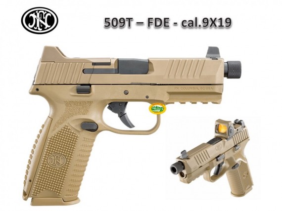 La FN 509® Tactical, un'estensione della famiglia FN 509, si basa sulla pistola di presentazione FN testata dall'esercito americano per i suoi Modular Handgun Trials, ma include i significativi miglioramenti al design implementati nella FN 509. La pistola è dotata del sistema di montaggio ottico a basso profilo (Low-Profile Optics Mounting System™) brevettato dall'azienda (US Patent No. 10/352,654), che consente alla piattaforma di accettare più di dieci ottiche a punto rosso miniaturizzate (MRD) disponibili in commercio, che si integrano con le mire notturne ad altezza silenziatore e rimangono adattabili a futuri sganci di ottiche senza richiedere la fresatura diretta del carrello. Il tappo del carrello, da utilizzare quando non si spara con un'ottica, presenta alette di mira rialzate che proteggono l'allineamento delle mire metalliche in caso di caduta o urto della pistola, e offre una rampa strutturata per appoggiare il carrello contro un passante per cintura, una tasca dei pantaloni o uno stivale. Una canna in acciaio inossidabile da 4,5 pollici, rotomartellata a freddo, con corona di mira, filettatura da ½" x 28, compatibile con la maggior parte dei silenziatori calibro 9 mm disponibili, e un tappo filettato con O-ring integrato per evitare l'allentamento durante l'uso, completano il top di gamma. Infine, i caricatori da 24 colpi, di lunghezza pressoché identica a quella del carrello, massimizzano la capacità di munizioni senza compromettere la praticità di porto. Trattandosi di una versione tattica, la colorazione non poteva che essere flat dark earth.