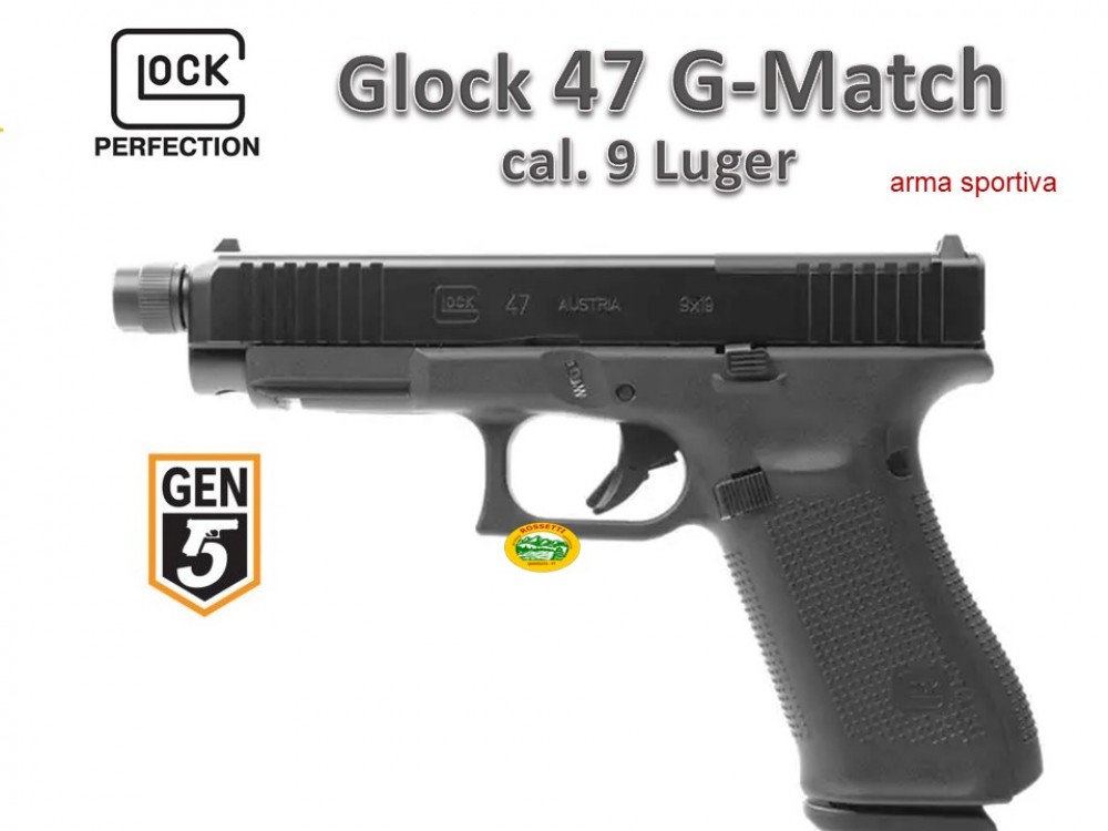 La nuova Glock 47 in cal.9 Luger rappresenta una delle migliori soluzioni della casa autriaca per il tiro sportivo, sia accademico che dinamico, possibilità M.O.S. grazie al montaggio di un red-dot per una veloce e sicura acquisizione del bersaglio, canna lunga 5" con possibilità di montaggio di un freno di bocca con passo 1/2 x 28 ,peso contenuto in 756 gr. fornita di 2 caricatori da 17 colpi