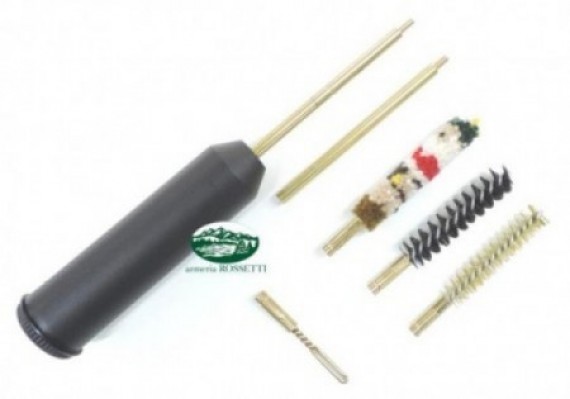 Kit pulizia tascabile per pistola in blister con bacchetta in ottone in 2 pezzi - set 3 scovoli e porta pezzuola.