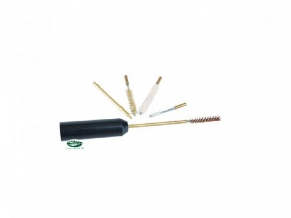 Kit pulizia tascabile cal38/9mm,contiene 1 scovolo in ottone ,1 in nylon,1 in lana e uno spingipezzuola.